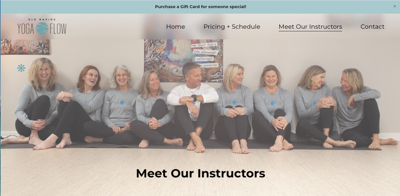 Elk Rapids Yoga Flow came to me with an existing Squarespace website that no longer felt aligned with their studio or easy to maintain. The goal was to simplify the structure, refresh the visuals, and create a site that felt calm, clear, and easy for both the owner and clients to navigate.